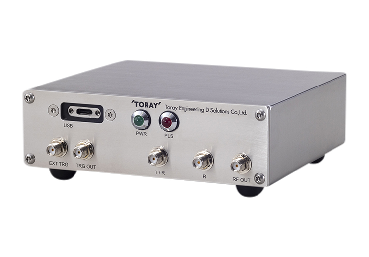 半導体検査用途では、超音波トランスデューサをパルス信号で駆動するために、信号の受発信を行う超音波パルサレシーバを組み合わせて用います。このため、適宜、その超音波トランスデューサに合わせた超音波トランスデューサを選択します。一般的には、使用する超音波トランスデューサの2倍程度の周波数帯域を持つ超音波パルサレシーバを使用することが推奨されています。