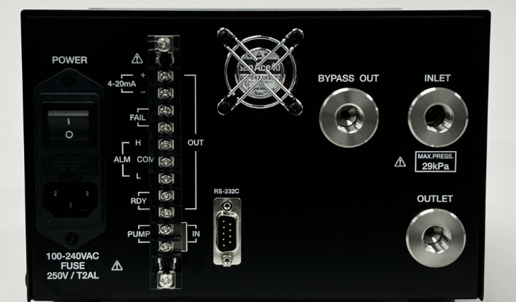 | ガス接続口 | INLET(試料ガス入口) Rc1/4 BYPASSOUT(バイパス出口) Rc1/4 OUTLET(試料ガス出口) Rc1/4 |